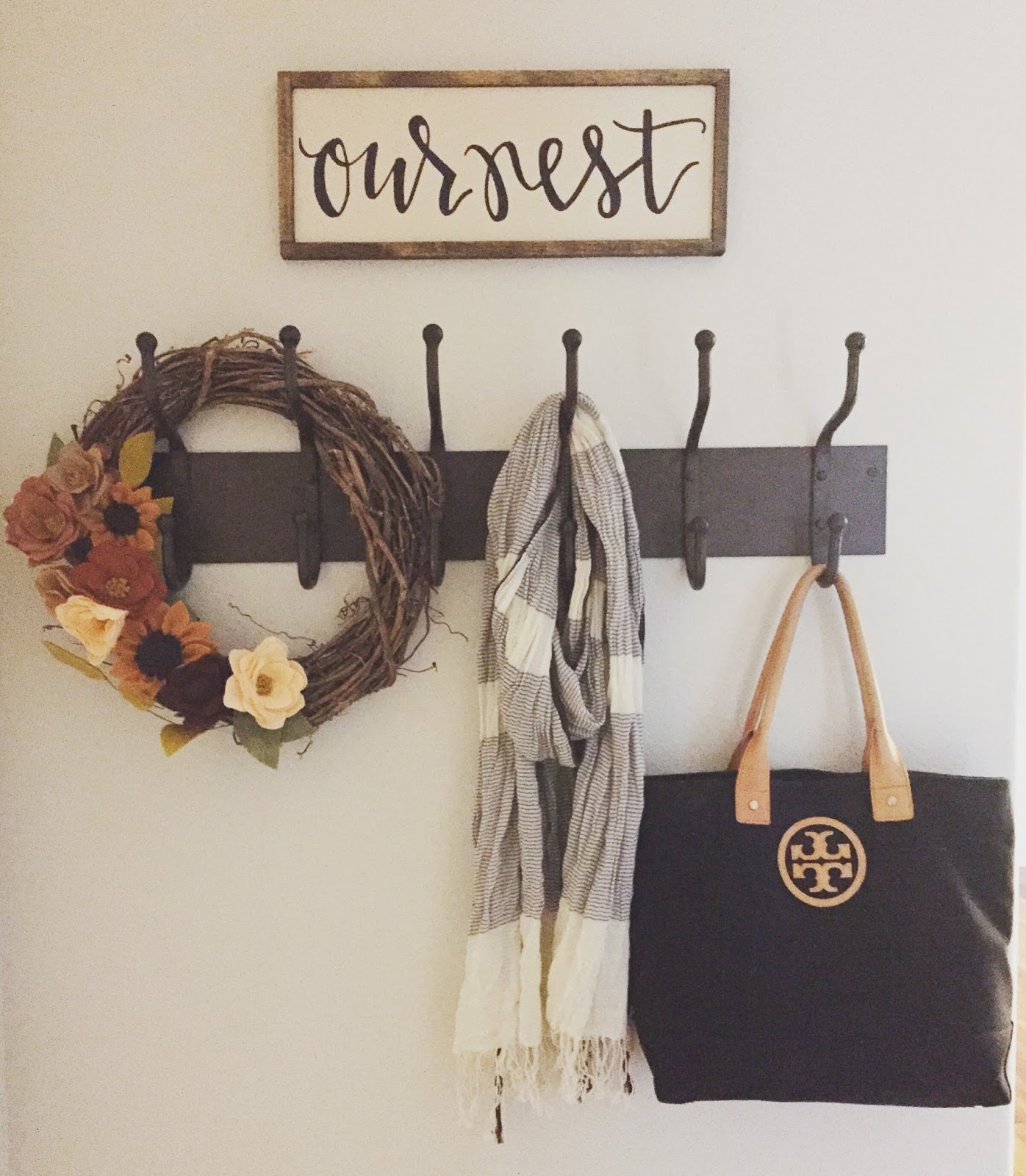 | Pretty fall wreath and fun new sign in our entryway |